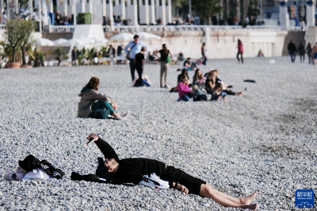 1月3日,人们在法国南部城市尼斯的海边休闲。