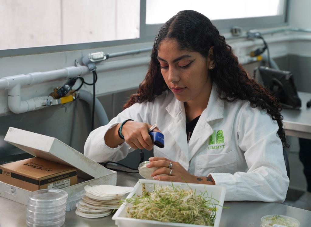 2022年11月7日,研究人员在墨西哥特斯科科郊外国际玉米小麦改良中心做实验。华社记者 朱雨博摄
