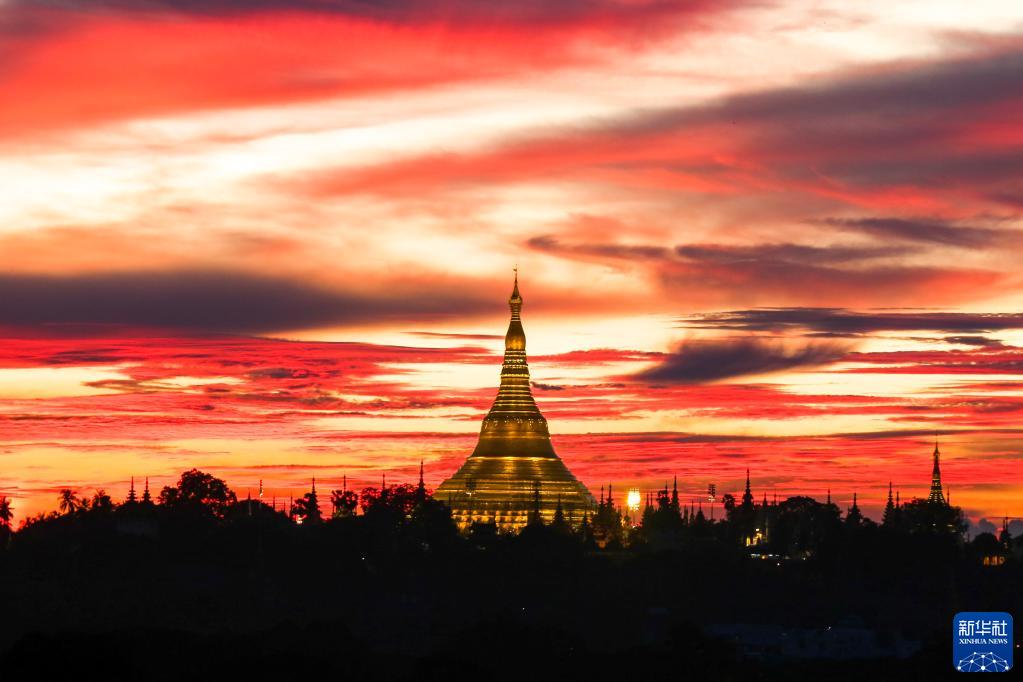 这是2022年9月1日傍晚晚霞映衬下的缅甸仰光大金塔。