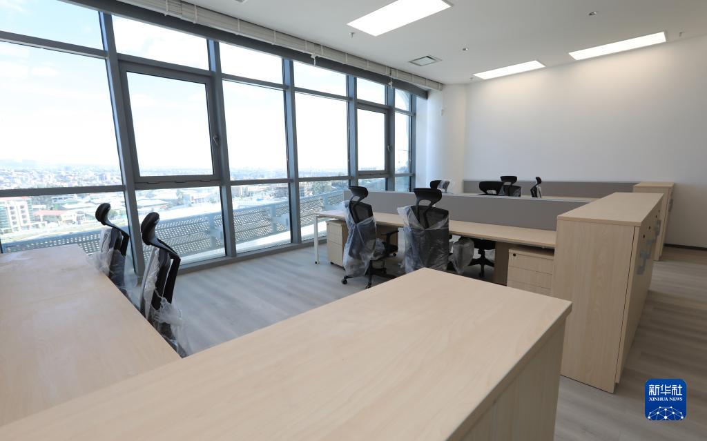 这是1月8日在埃塞俄比亚首都亚的斯亚贝巴拍摄的非洲疾控中心总部大楼内的办公室。