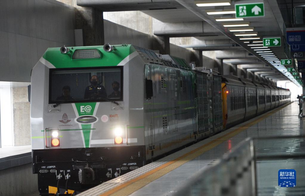 1月11日,在泰国曼谷,中国中车大连公司生产的电池动力机车驶入车站。新华社发(拉亨摄)