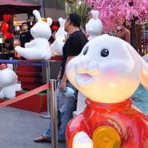 兔年春节临近,印度尼西亚雅加达潘佐兰广场(又名“新中国城”)内焕然一新,节日氛围渐浓。