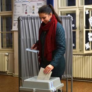 1月13日,选民在捷克布拉格一处投票点投票。