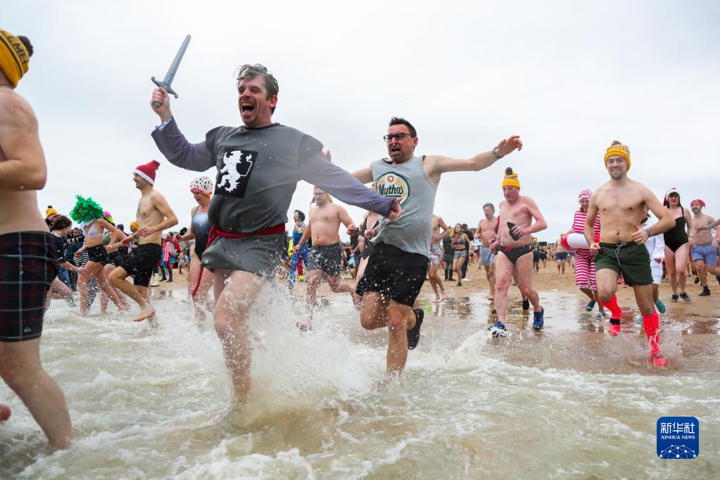 当日,比利时港口城市奥斯坦德举行传统的“跳北海庆新年”活动,数千参加者身着各式服装跳进北海。人们认为冰冷的海水能让人精神焕发,拥抱健康的一年。