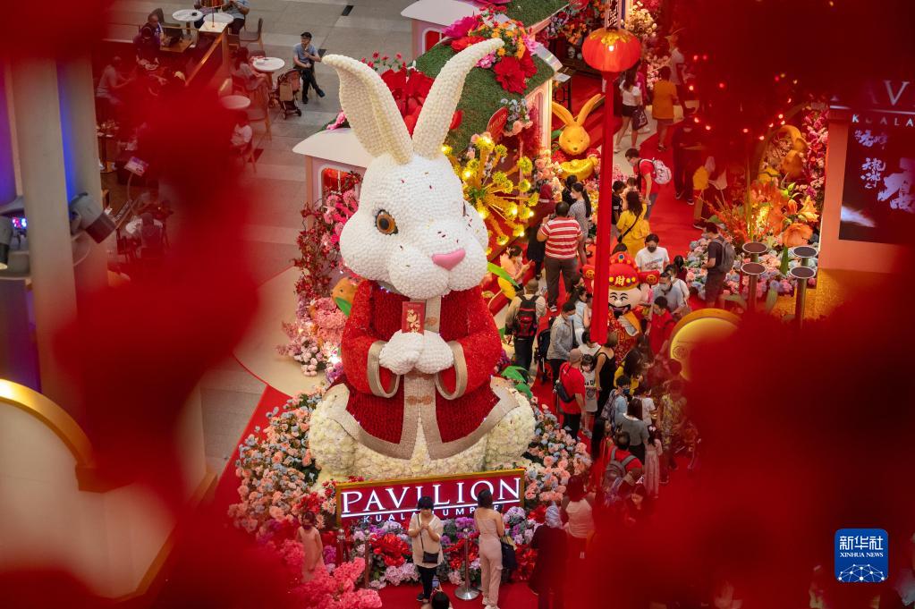 随着春节临近,吉隆坡的商场也都换上了新春装饰,迎接兔年的到来。