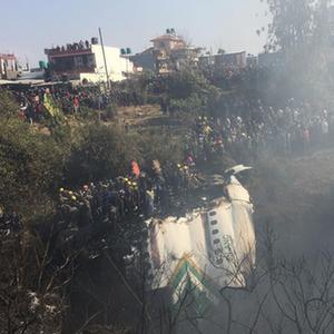 这是1月15日在尼泊尔博克拉地区拍摄的客机坠毁现场。新华社发(尼通社供图)