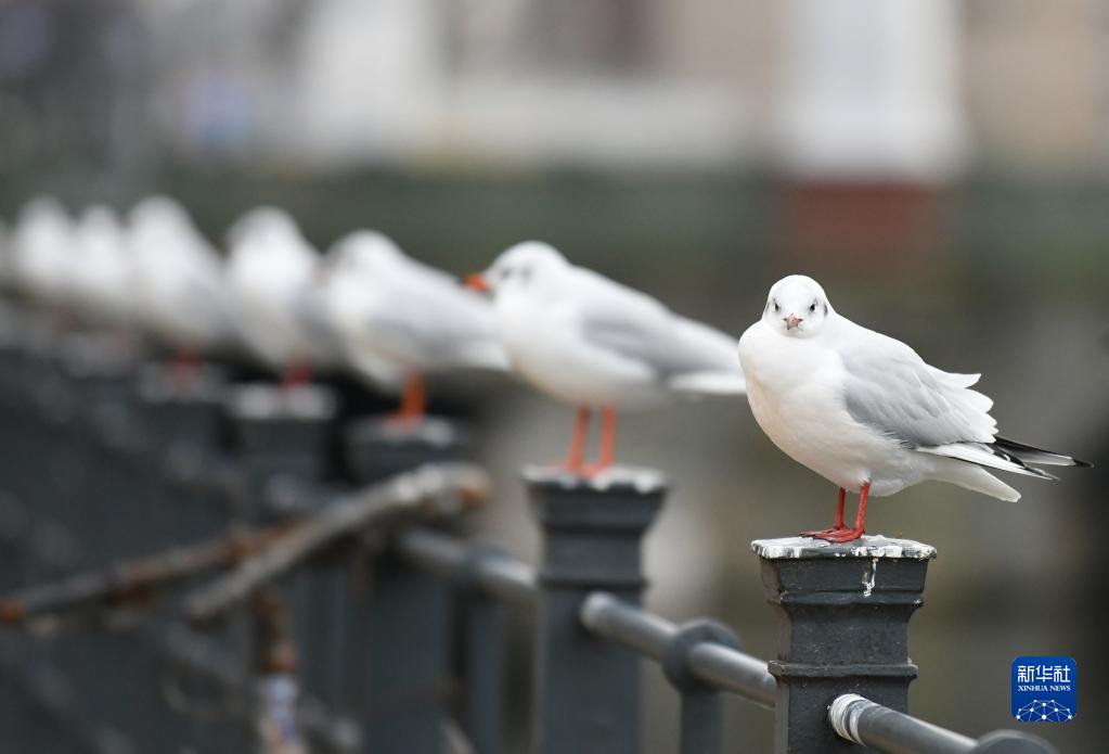 1月10日,红嘴鸥在德国柏林施普雷河畔休憩。