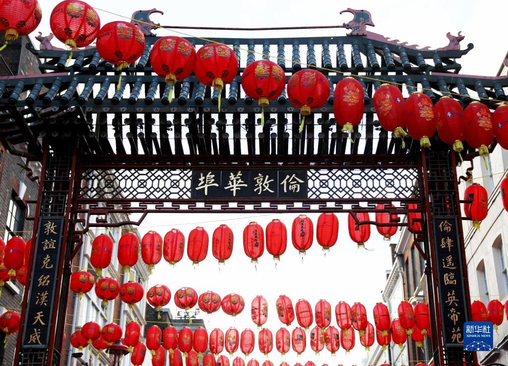 这是1月20日在英国伦敦中国城拍摄的红灯笼。