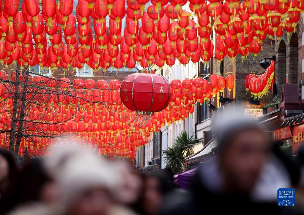 1月20日,人们在英国伦敦中国城内游览。