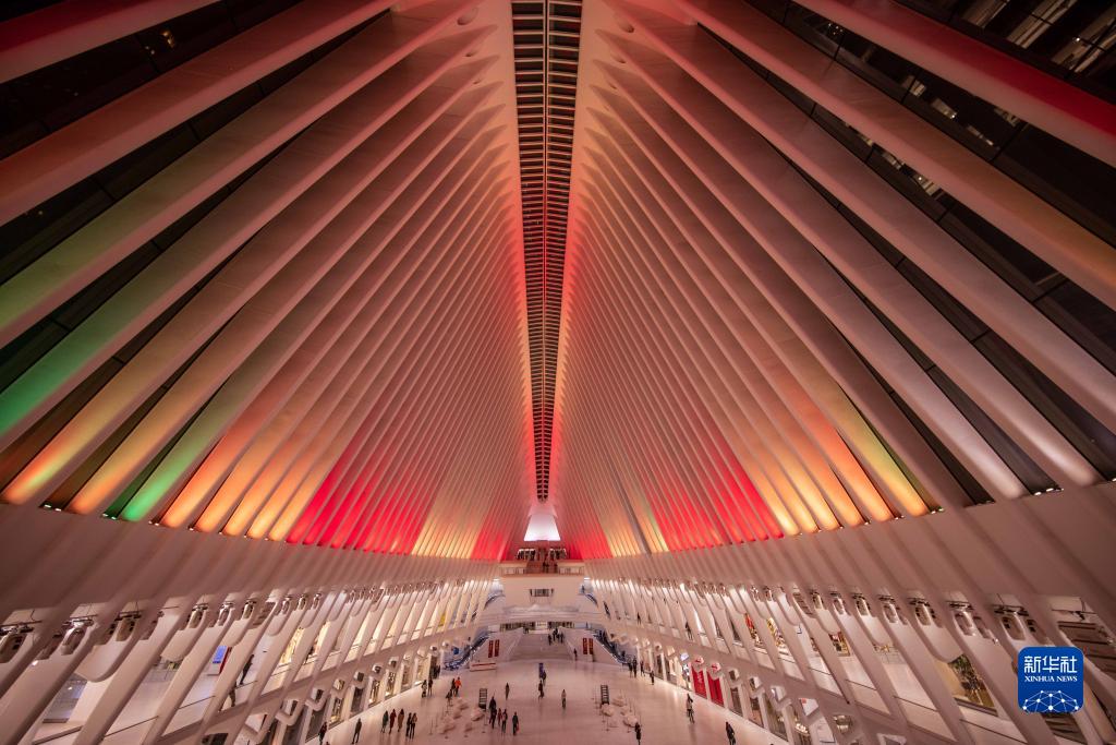 1月20日,美国纽约的世贸中心车站亮起灯光庆祝中国春节。