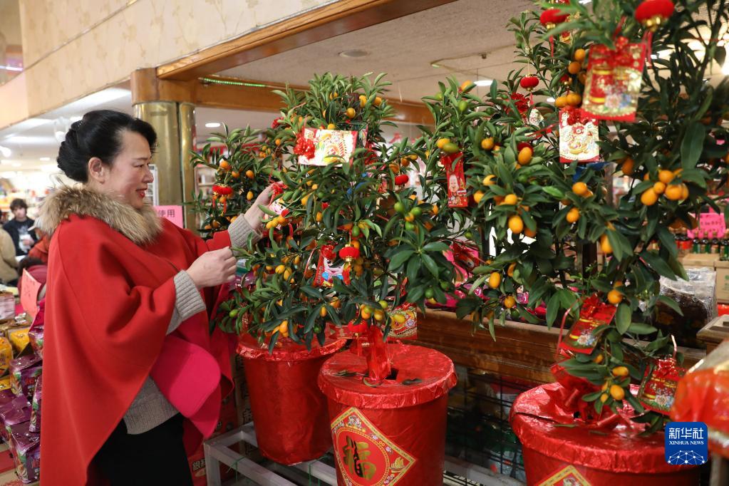 1月20日,一名女子在美国旧金山唐人街选购金桔。