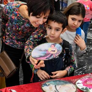 当天,迎新春中国文化体验活动在莫斯科市政府宴会厅内举办,来宾在中国春节前夕集中体验临摹中国画、中国书法、编中国结等中国传统文化和民俗活动。