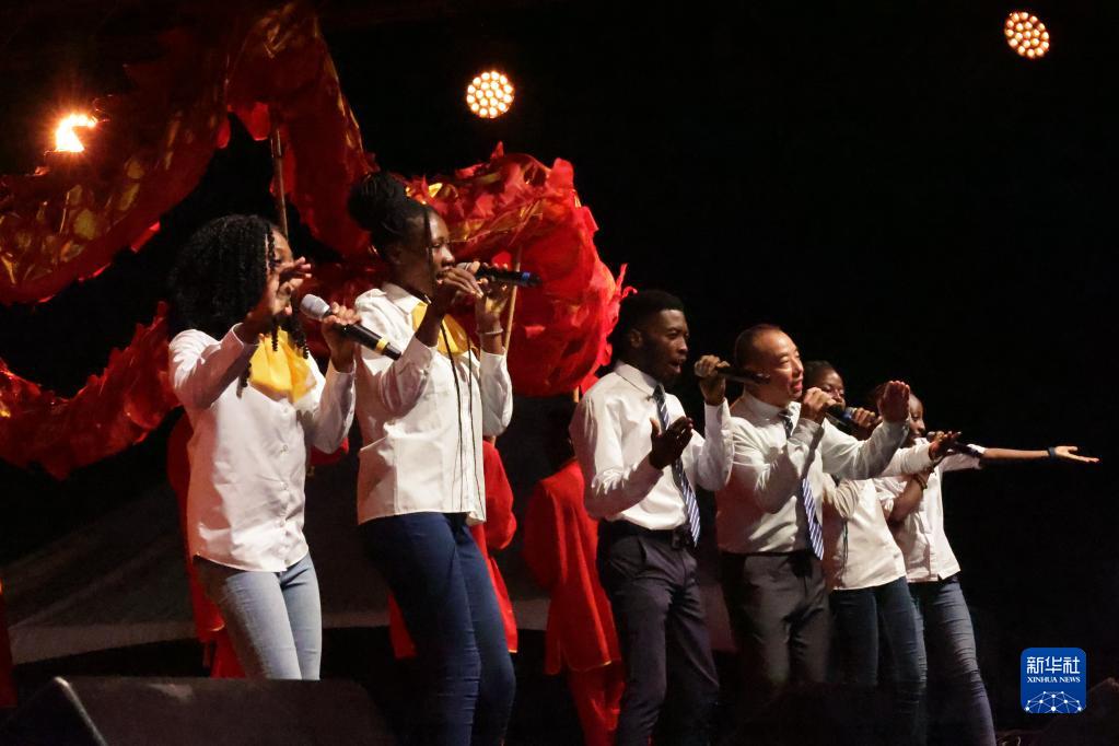1月20日,加纳大学孔子学院的师生在阿克拉举办的新春晚会上表演中国歌舞。