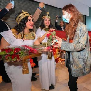 1月20日,中国游客到达埃及开罗国际机场后受到热情欢迎。