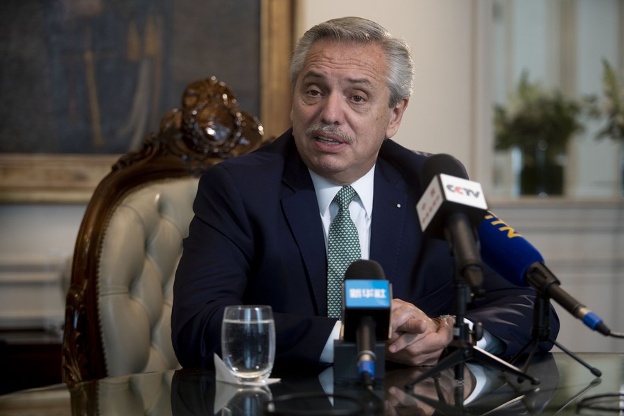 这是阿根廷总统费尔南德斯在首都布宜诺斯艾利斯的总统府玫瑰宫。(新华社发,马丁·萨巴拉摄)