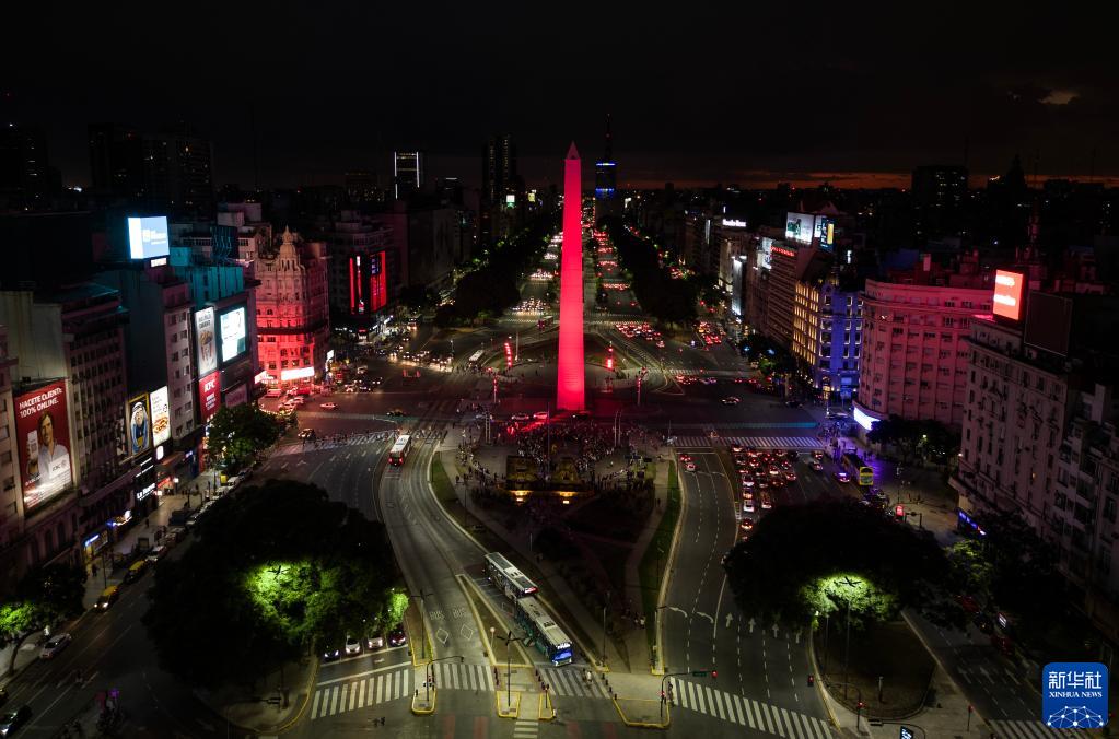 阿根廷首都地标建筑方尖碑点亮“中国红”