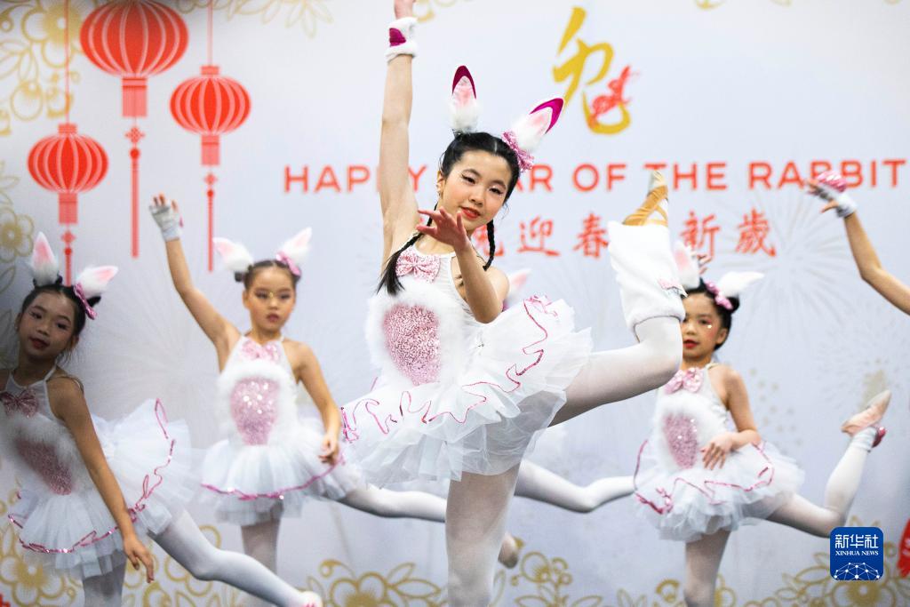 1月22日,在加拿大多伦多,扮作兔子的儿童在春节“庙会”上表演舞蹈。