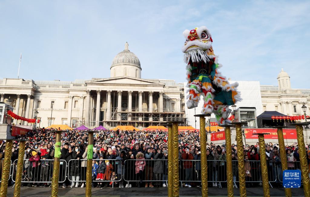 当日,英国伦敦特拉法加广场举行春节庆典,庆祝兔年新春佳节。