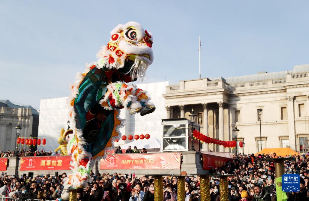 当日,英国伦敦特拉法加广场举行春节庆典,庆祝兔年新春佳节。