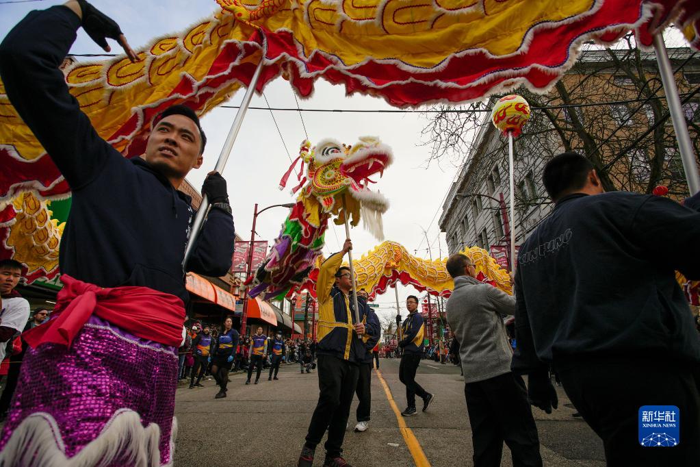 当日,加拿大温哥华唐人街举行第48届春节大巡游,吸引数万民众到场观看,共同庆祝兔年新春佳节。