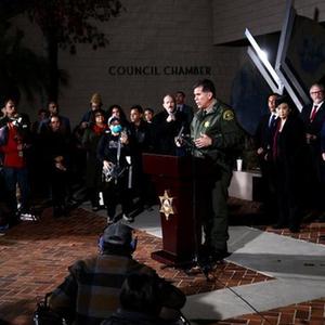1月22日,在美国加利福尼亚州蒙特雷帕克市政厅,洛杉矶县警察局局长罗伯特·鲁纳参加新闻发布会。