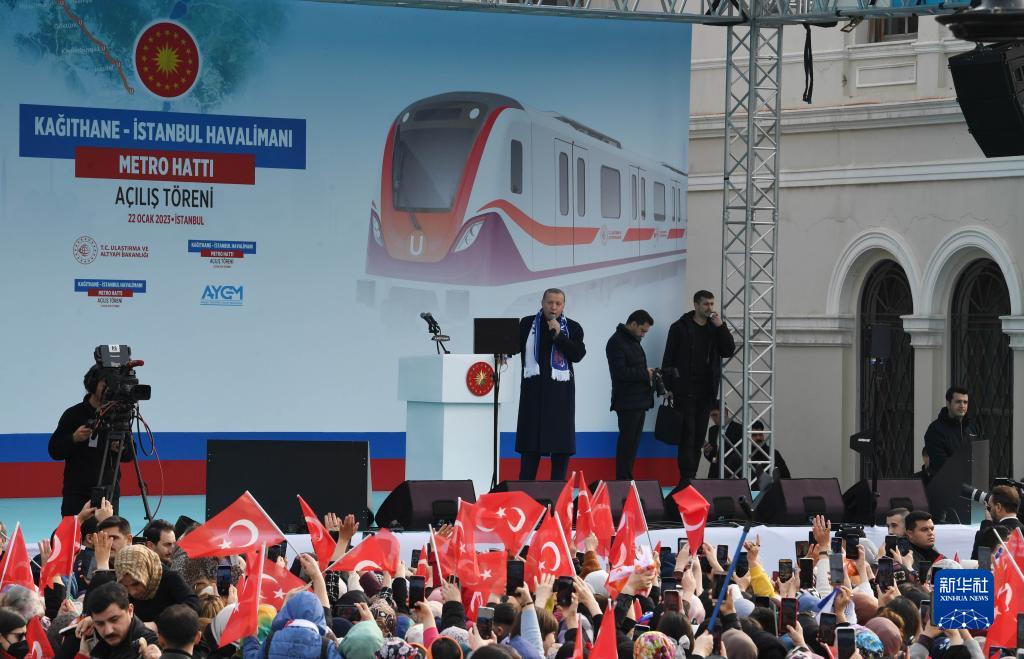 1月22日,土耳其总统埃尔多安出席伊斯坦布尔新机场线开通仪式。