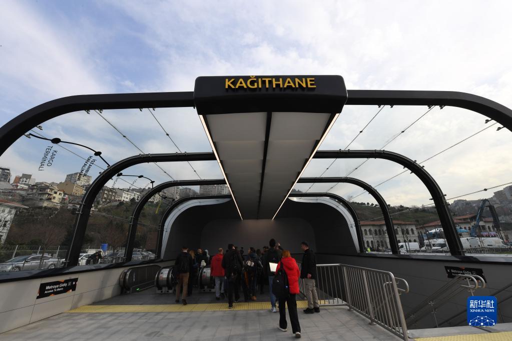 1月22日,在土耳其伊斯坦布尔,人们步入伊斯坦布尔新机场线卡厄特哈内车站。