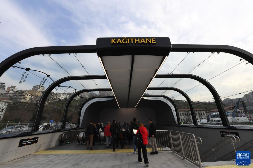 1月22日,在土耳其伊斯坦布尔,人们步入伊斯坦布尔新机场线卡厄特哈内车站。