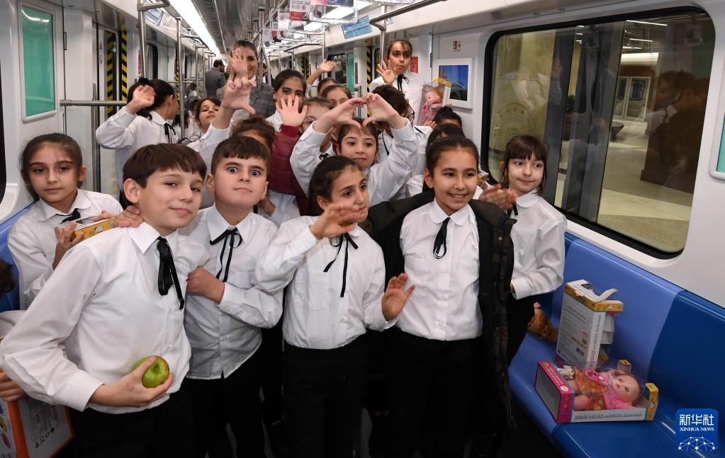 1月22日,学生登上伊斯坦布尔新机场线地铁列车体验。