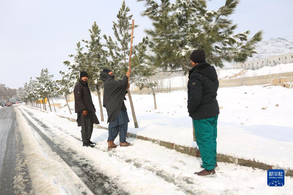 1月23日,人们在阿富汗首都喀布尔街头清理积雪。