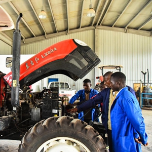 1月12日,在喀麦隆亚巴西,学生在农业职业技术中学上拖拉机实践课。