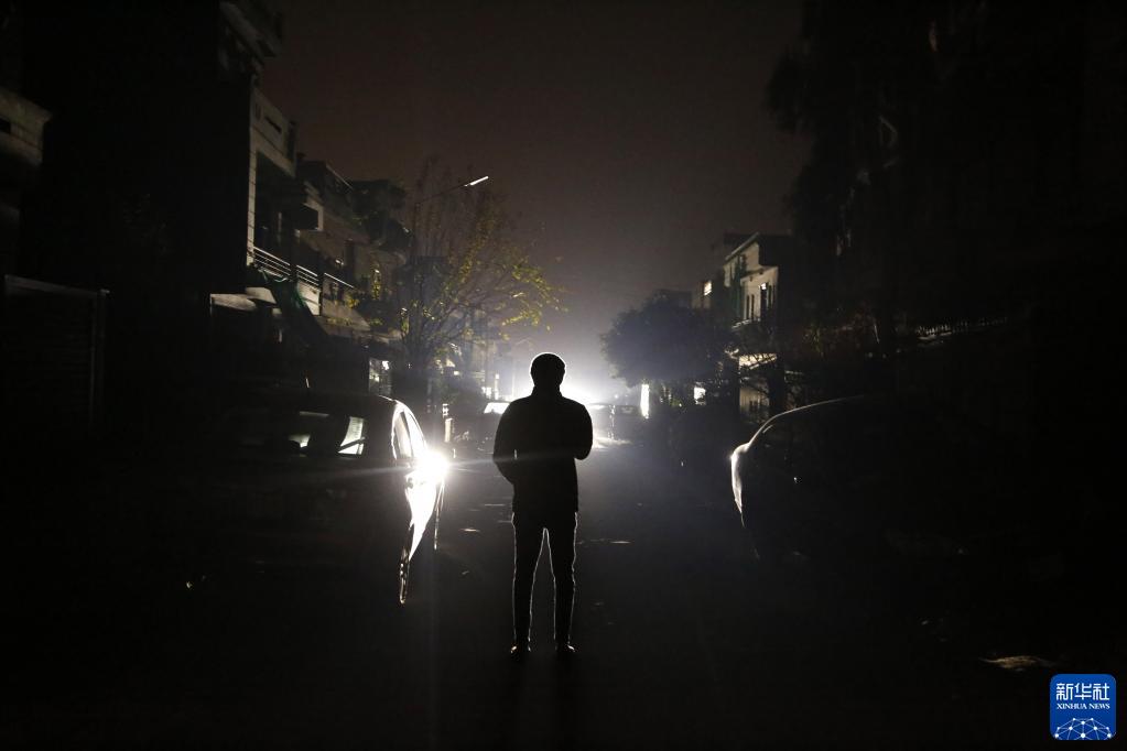 1月23日,一名男子在大规模停电期间走在巴基斯坦伊斯兰堡街头。
