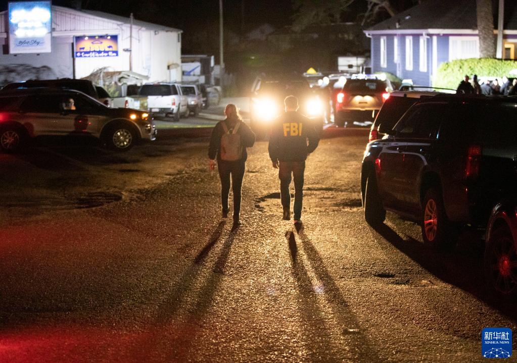 1月23日,执法人员在美国加利福尼亚州旧金山湾区半月湾市枪击事件现场调查。