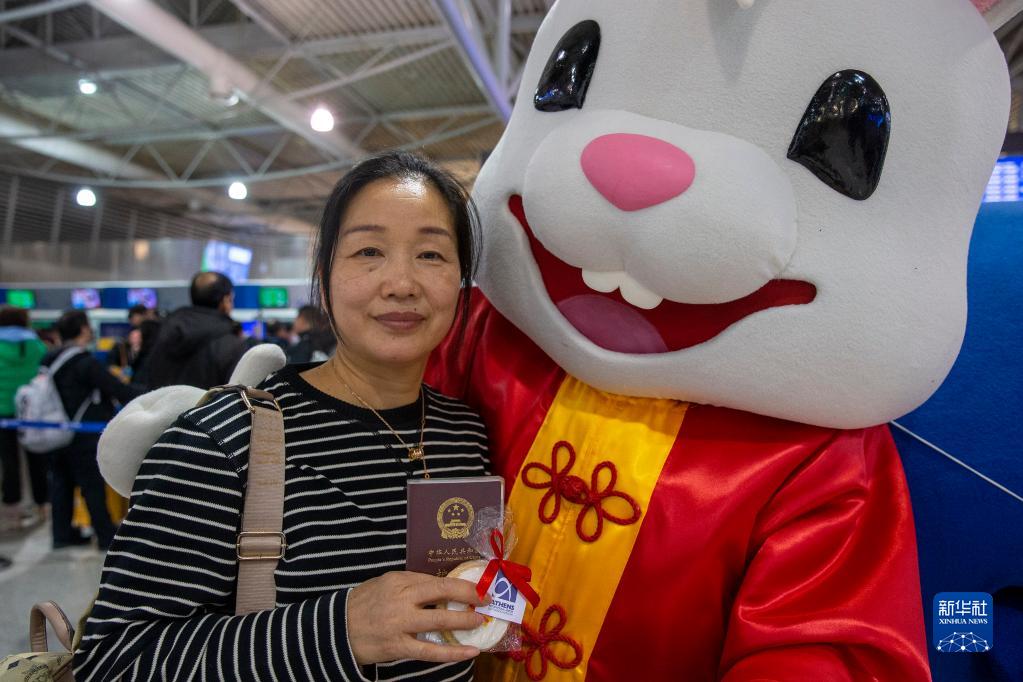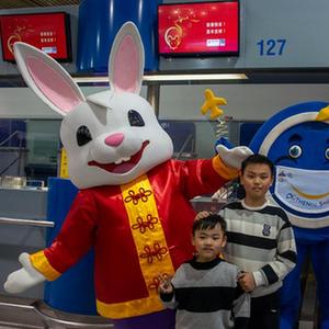 中国农历兔年春节期间,希腊雅典国际机场推出兔子吉祥物,为乘客送上吉祥与欢乐。