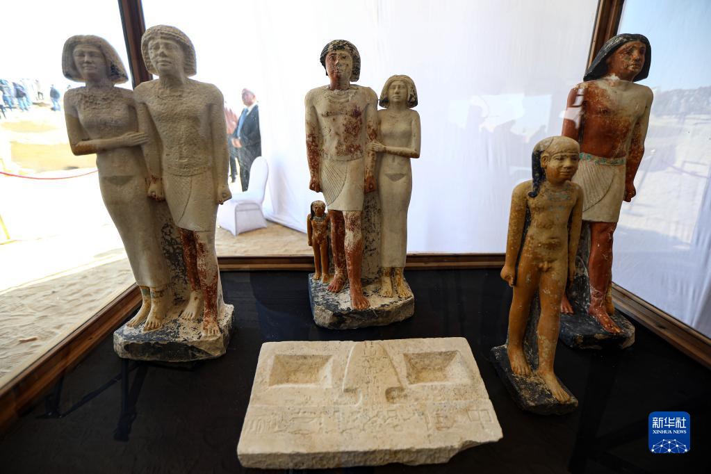 这是1月26日在埃及塞加拉地区考古发掘现场拍摄的出土文物。