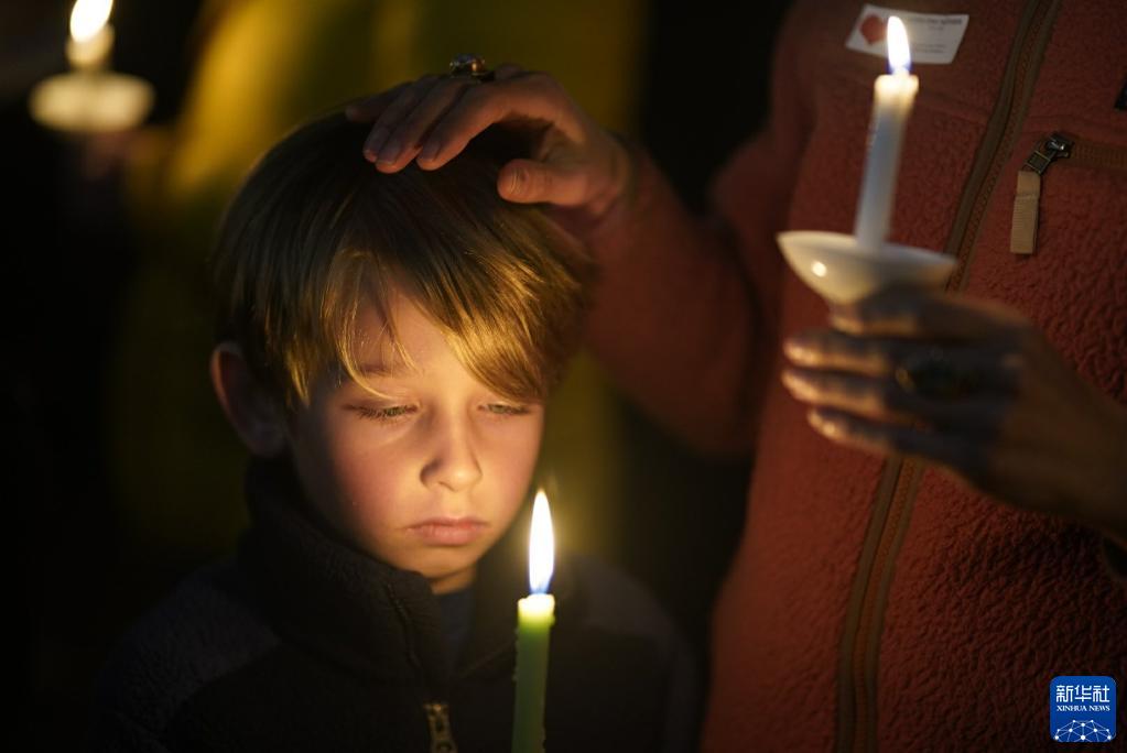 1月27日,一个男孩在美国加利福尼亚州半月湾市举行的守夜活动中哀悼枪击事件遇难者。