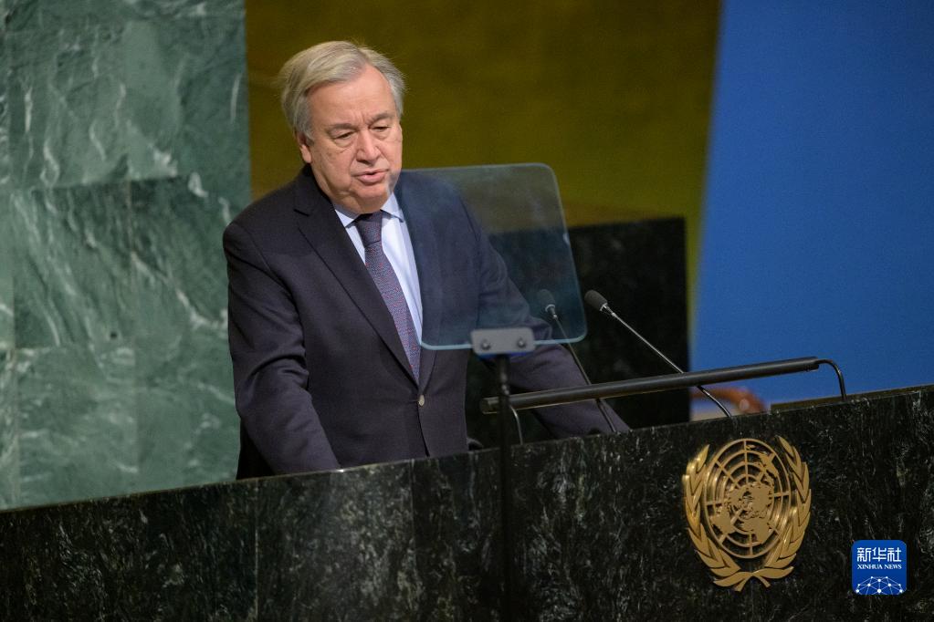 1月27日,在位于纽约的联合国总部,联合国秘书长古特雷斯在“国际大屠杀纪念日”纪念活动上发表讲话。
