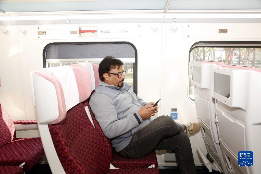 1月27日,在巴基斯坦伊斯兰堡,乘客坐在绿线特快列车组的中国进口铁路客车内。