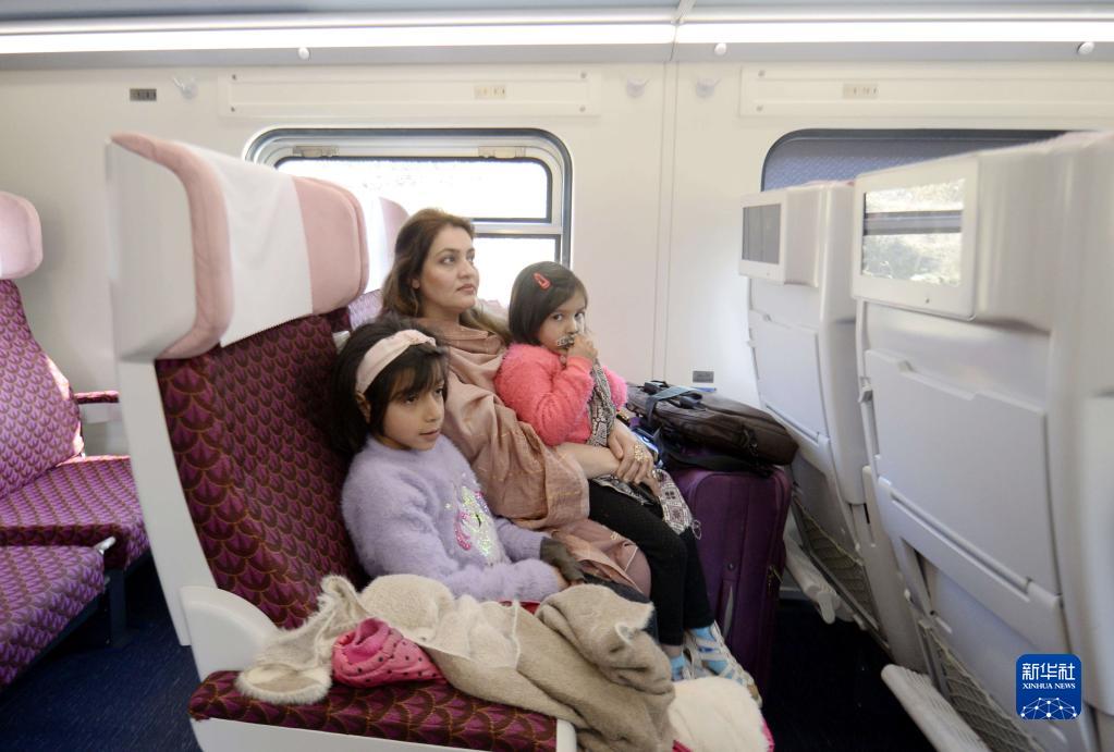 1月27日,在巴基斯坦伊斯兰堡,乘客坐在绿线特快列车组的中国进口铁路客车内。
