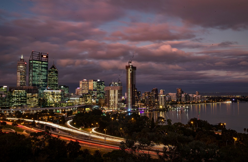 这是2022年6月15日在澳大利亚西澳大利亚州首府珀斯拍摄的城市夜景。(新华社记者白雪飞摄)