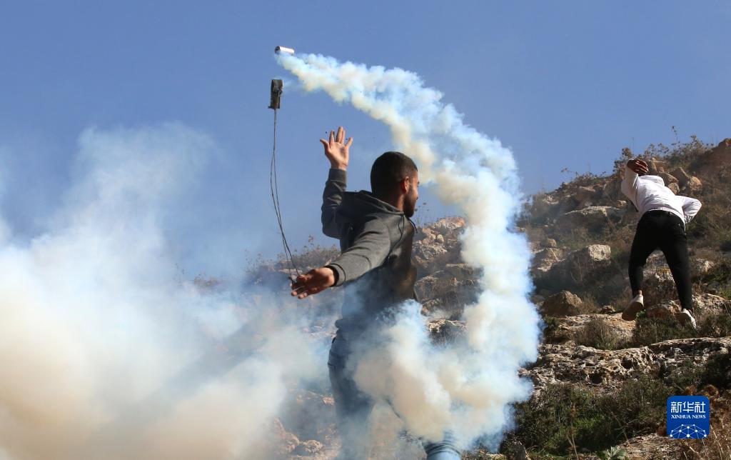 1月27日,在约旦河西岸城市纳布卢斯东部村庄拜特代坚,巴勒斯坦抗议者与以色列士兵发生冲突。