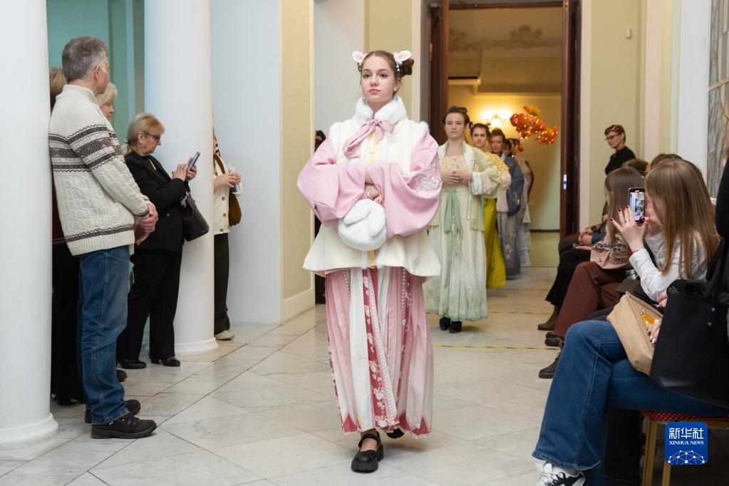 1月30日,观众在俄罗斯圣彼得堡凯瑟琳礼堂欣赏中式服装秀。
