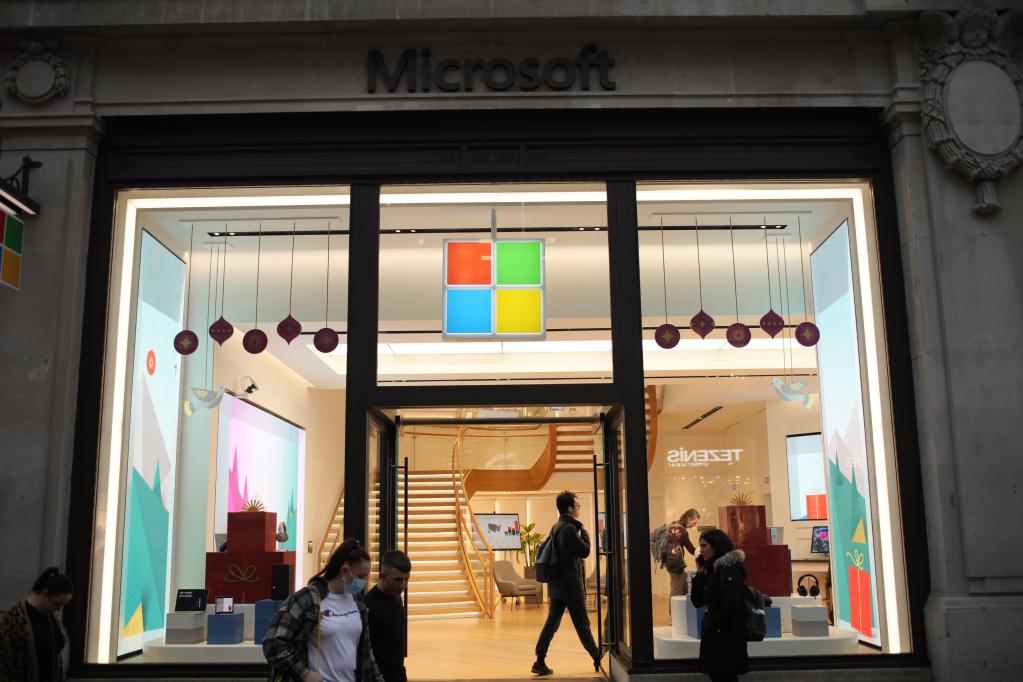 这是2021年11月在英国伦敦拍摄的一家微软专卖店。新华社发(蒂姆·爱尔兰摄)