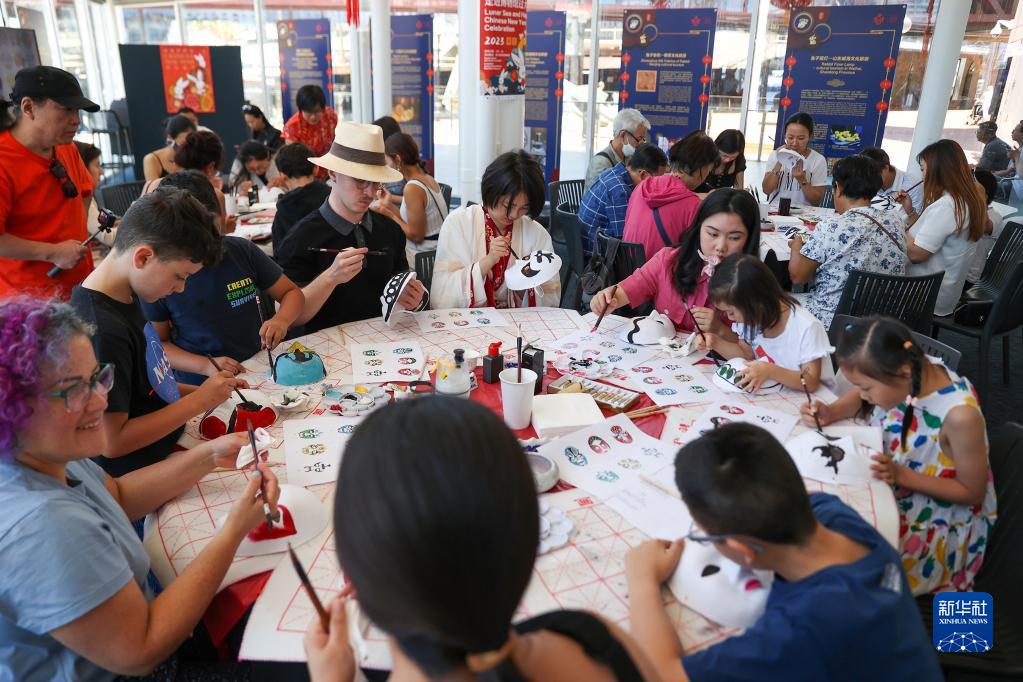 2月4日,在澳大利亚悉尼海事博物馆,游客在“欢乐春节——走进博物馆过大年”文化体验活动中体验戏曲脸谱绘画。