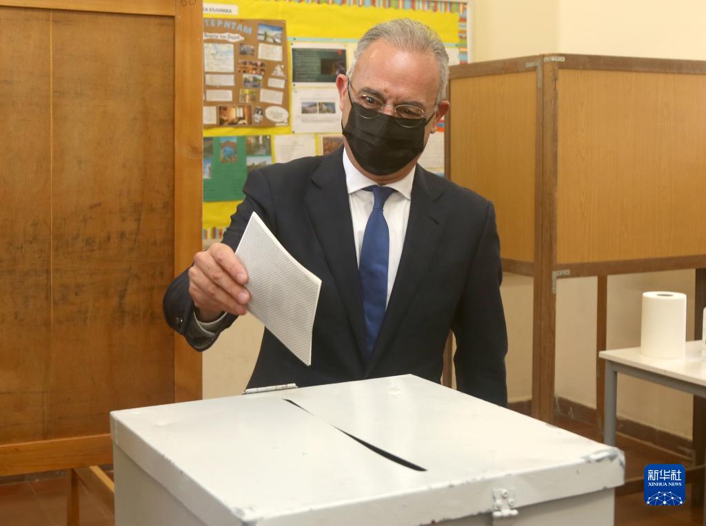 2月5日,执政的民主大会党总统候选人奈奥菲多在塞浦路斯首都尼科西亚的一个投票站投票。