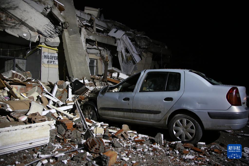 2月7日在土耳其东南部加济安泰普拍摄的受损的房屋和汽车。