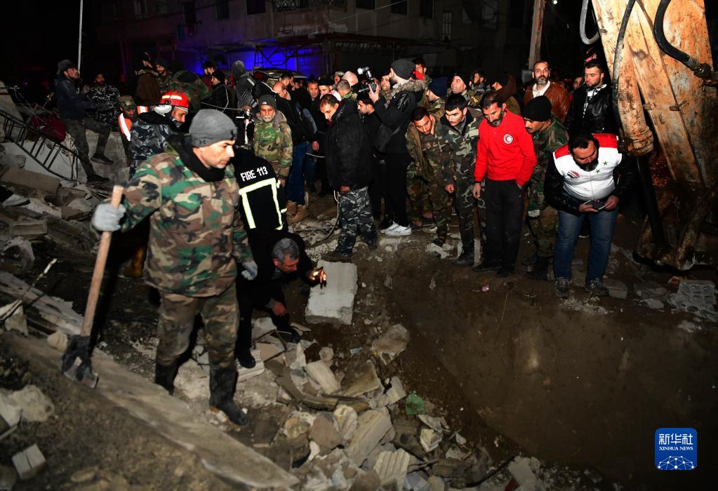 2月8日,救援人员在叙利亚大马士革的一处地震废墟搜救。