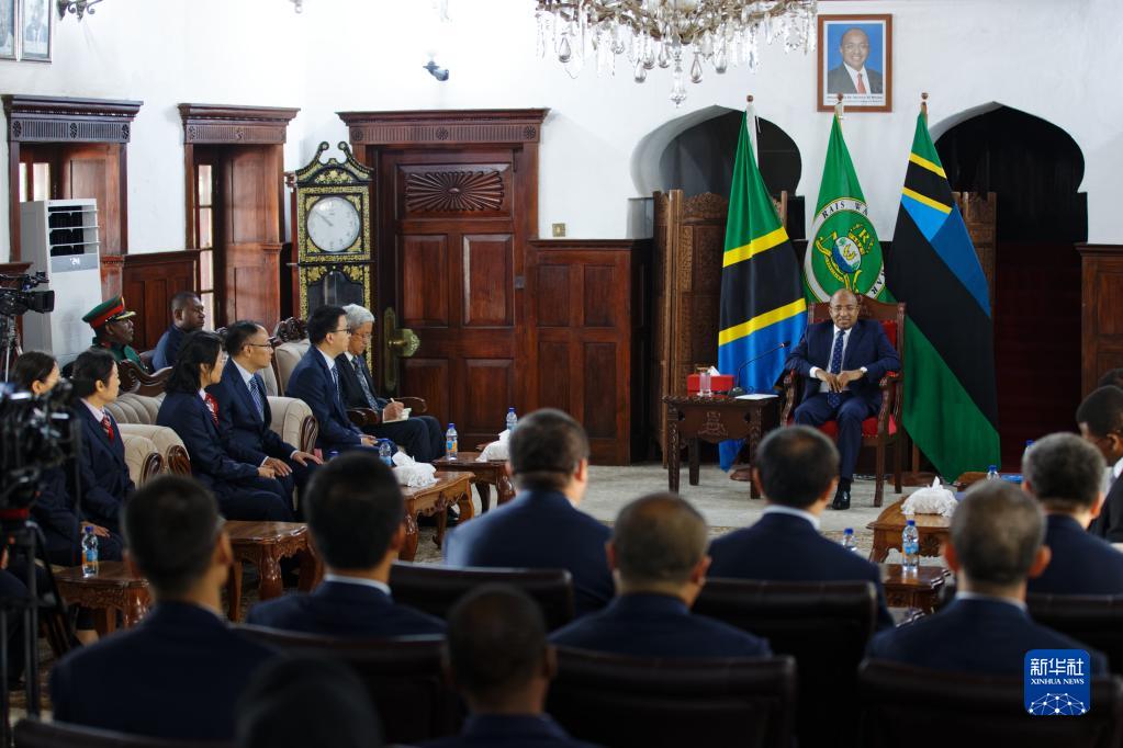 2月8日,坦桑尼亚桑给巴尔总统姆维尼在桑给巴尔总统府会见第32期中国援桑给巴尔医疗队,对中国政府长期提供的医疗援助表示感谢。新华社发(坦桑尼亚桑给巴尔总统府供图)