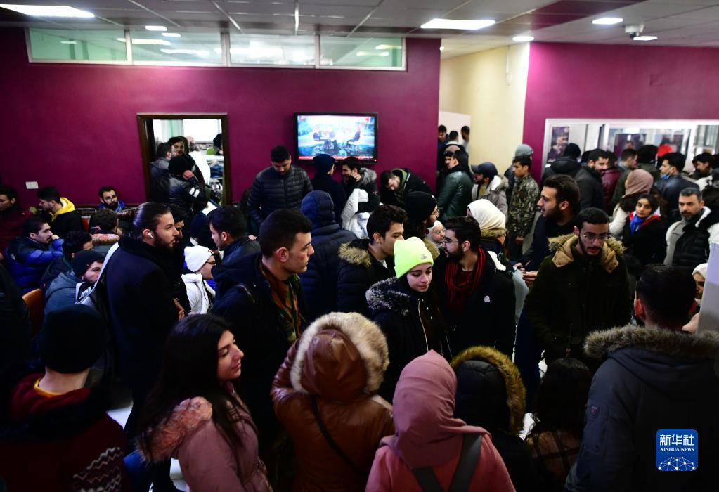 2月8日,民众在叙利亚首都大马士革一处献血中心等待献血。