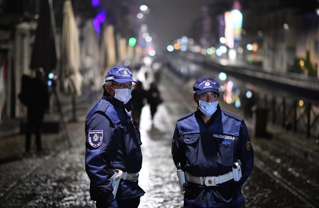 2020年10月22日,意大利警察在米兰市街道巡逻。新华社发(达尼埃莱·马斯科洛摄)